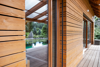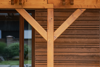 Pro pergolu a venkovní fasádu byl použit Induline GW-310, vodou ředitelná tenkovrstvá lazura se základní ochranou proti zamodrání. Tento materiál sloužil zároveň jako základní, mezivrstvý i konečný nátěr. Lazura chrání dřevo před vlhkostí, UV zářením a povětrnostními vlivy, rychle schne a umožňuje rovnoměrné, dlouhodobé zvětrávání bez odlupování nátěru, což je ideální pro dřevo v exteriéru.