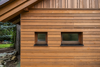 Na dřevěné obklady v obytné části byl aplikován Induline LW-716 WF [iac], vodní UV lazura s funkcí dlouhodobého čištění vzduchu v interiéru. Tato lazura redukuje obsah formaldehydu v místnosti, zpomaluje žloutnutí dřeva a vytváří difuzně otevřený povrch, který se neloupe a nepraská. Je navíc bez konzervačních látek a vhodná do obytných prostor.